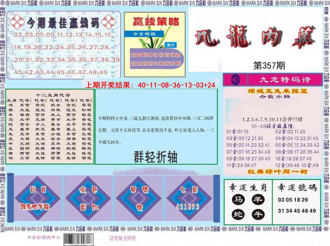 357期: 澳门六合彩彩圖信封【九龙内幕】每期自动更新